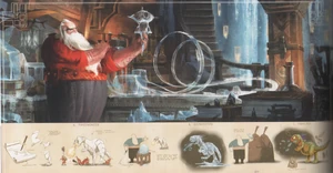 In the original books, the Guardian of Time, Ombric Shalazar, both taught and tutored North in the art of magic. Where he was able to become a great master wizard which that Ombric, himself, tell North that he as surpassed him. North combines his magic with science for his toys making. Which is how he is able to fill them with wonders of joy for children, along with a few of his inventions that bring amazing results. Like the Globe of the World in his workshop, his portal creating Snow Globes (that allow him to deliver his magical crafted toys in one night by telling them where in the world he could like to go), and his famous reindeer-pulled sleigh. While many of his inventions have their own magic, North's sleigh can long fly when he places his own magic in it to help the reindeer fly and pull the heavy weighted sleigh around the world, without his magical assistance both sleigh and reindeer can't get off the ground.