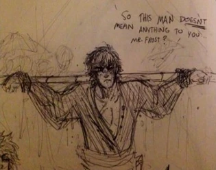 Man of the crow's nest, acrobat and assassin of the crew. Jackson "Frost" Overland has a wit that can run circles over his captain and has the feet to match, ever stealthy and shoeless. His origins are a mystery to everyone and himself, something that could explain his pale skin and white hair. He can also be seen as a infamous pirate captain or a wanted mercenary, as well known pirates were feared throughout the sea.