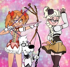 Puella Magi Madoka Magica AU (also known as Maho Shoujo Madoka Magica AU, Madoka Magica AU or PMMM AU) is an alternate universe usually within the Rise of the Brave Tangled Dragons universe, but also with Rise of the Brave Tangled Frozen Dragons universe. In the AU, Rapunzel, Merida, Hiccup and Jack Frost play roles from Puella Magi Madoka Magica. This can be considered an offshoot to Superhero AU and Anime AU.